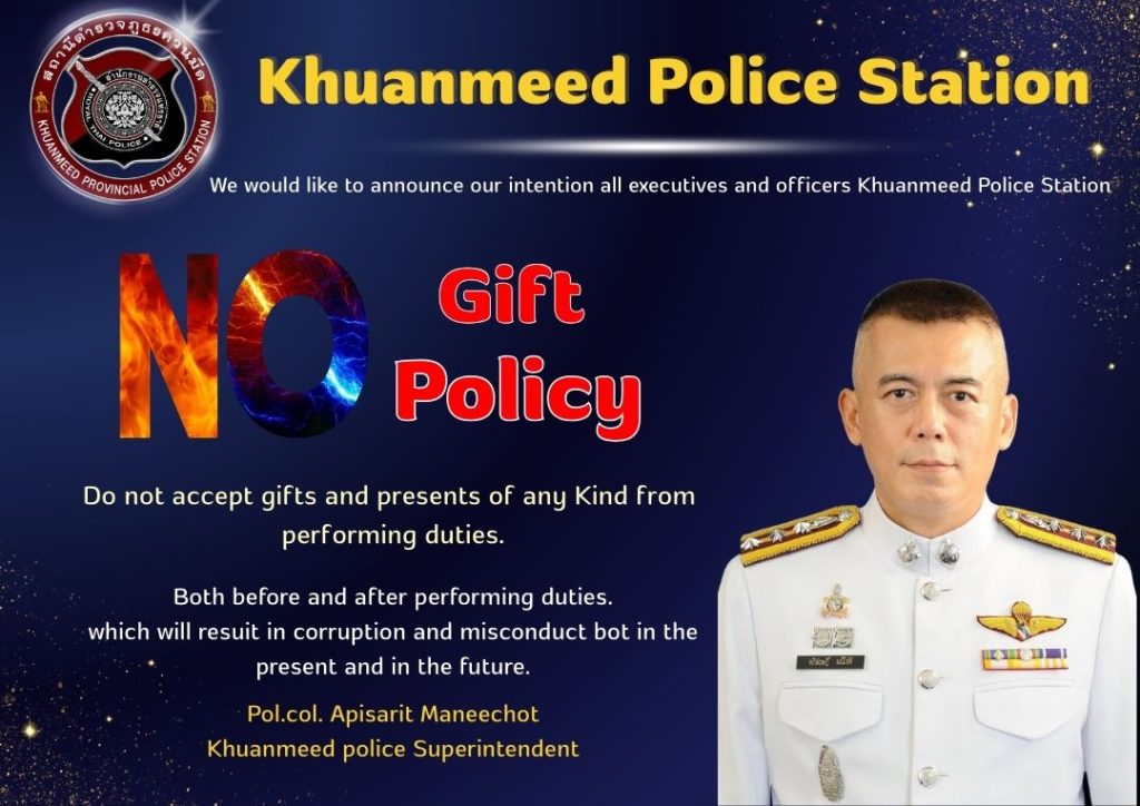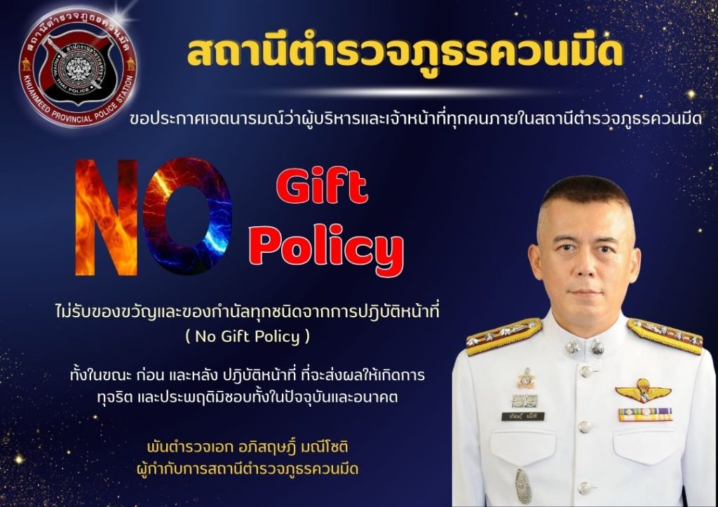 ประกาศเจตนารมณ์ไม่รับของขวัญและของกำนัลทุกชนิดจากการปฏิบัติหน้าที่ (No Gift Policy)