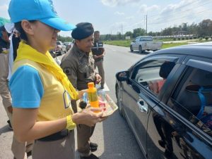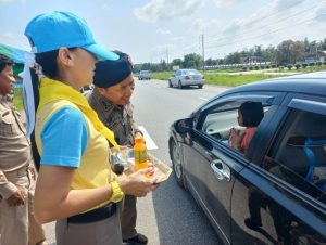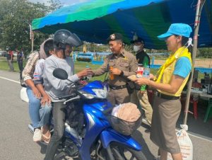 พ.ต.อ.อำไพ ชุมช่วย ผกก.สภ.ควนมีด พ.ต.ต.ประเสริฐ มณีโชติ สวป.ฯ พร้อมข่ายจราจร จิตอาสาประชาชน อำนวยความสะดวกด้านการจราจร ประชาสัมพันธ์ป้องกันและลดอุบัติเหตุทางถนน ในช่วงเทศกาลปีใหม่ 2567 บริเวณจุดตรวจร่วม ความปลอดภัยทางถนน พร้อมแจกน้ำและขนม หน้า สภ.ควนมีด